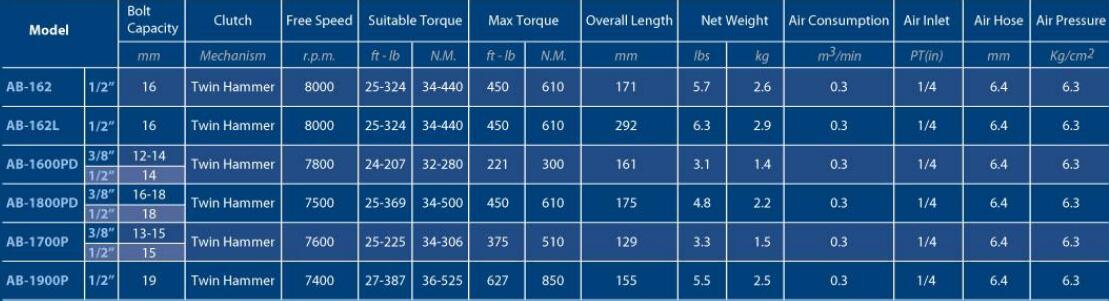AB-1900PD( 二分之一)枪型气动扳手